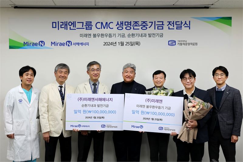 이번 후원금 전달식에는 김영진 미래엔그룹 총괄회장과 신광수 미래엔 대표이사, 박영수 미래엔서해에너지 대표이사를 비롯해 이화성 가톨릭대학교 의무부총장 겸 의료원장과 정해억 가톨릭중앙의료원 후원회사무국장, 추은호 서울성모병원 순환기내과 교수 등이 참석했다.