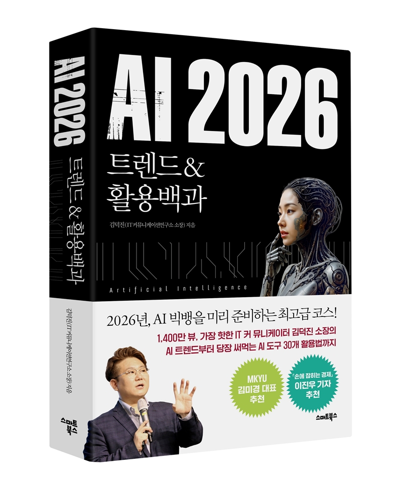 1400만 뷰 화제의 영상, 16주 연속 종합 베스트셀러의 김덕진 IT커뮤니케이션연구소장이 새로운 책 ‘AI 2026 트렌드&활용백과’(스마트북스)를 내놓았다. 이번 책은 단순히 AI를 소개하는 수준을 넘어 다가올 ‘AI 빅뱅 시대’를 앞두고 개인과 조직이 어떻게 준비해야 하는가를 본격적으로 다룬다.