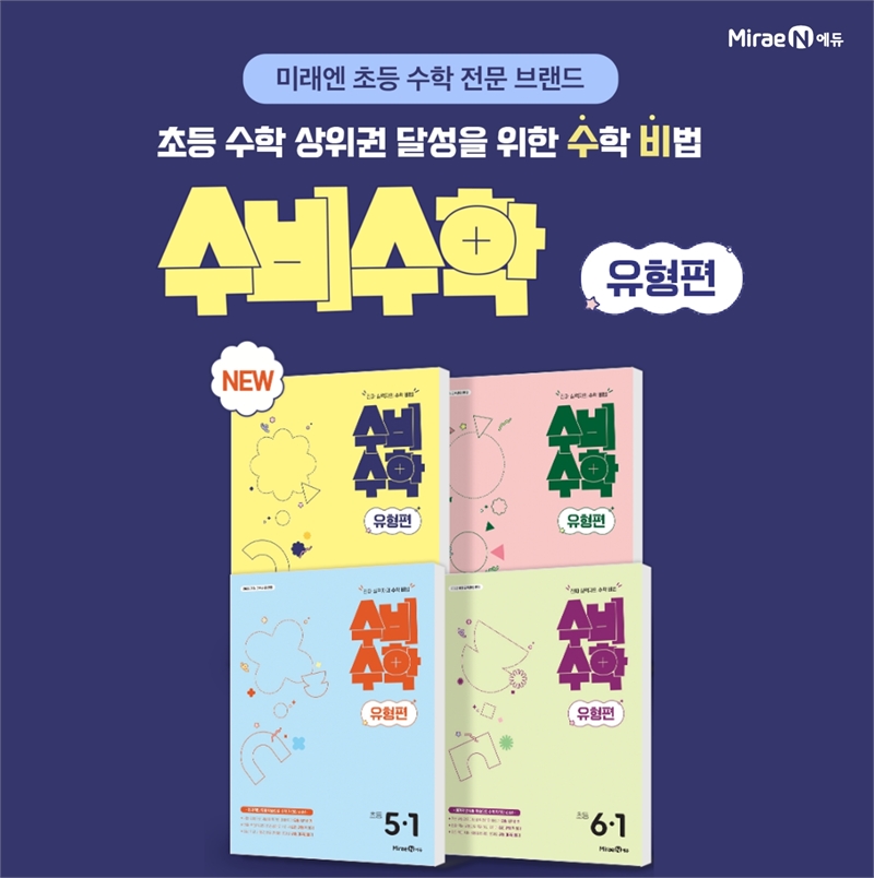 교과서 발행 부수 1위 기업 미래엔이 전국 초등 수학 선생님 약 300명의 참여로 완성도를 높인 초등 수학 전문 브랜드 ‘수비수학’의 유형편 교재를 출간했다.‘수비수학’은 초등 수학 상위권 달성을 위한 공부 비법을 담은 초등 수학 전문 참고서 브랜드다. 선생님이 학생의 수준과 학습 목적에 따라 효율적으로 지도할 수 있도록