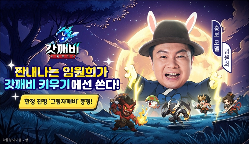 조이게임즈가 서비스 중인 모바일 방치형 RPG ‘갓깨비 키우기’의 특별 모델로 배우 임원희를 선정하고, 추석 연휴를 맞아 다양한 한정 콘텐츠와 이벤트를 선보인다.‘갓깨비 키우기’는 전통 설화를 현대적으로 풀어낸 방치형 RPG로, 캐릭터 수련과 진령 소환을 기반으로 한 전략적 전투가 특징이다. 3D 엔진을 활용한 2D 입체