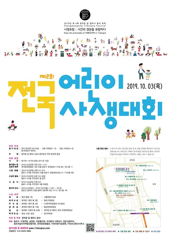 지난 2018년 첫선을 보인 <창덕궁 앞 열하나 동네 전국 어린이 사생대회>는 큰 인기에 힘입어 2019년 다시 돌아왔다. 자신이 원하는 장소를 선택해 그림을 그릴 수 있기 때문에 창덕궁 일대의 역사 깊은 장소와 문화재를 둘러볼 수 있어 초등학생 자녀를 둔 학부모들의 큰 호응을 얻었다.