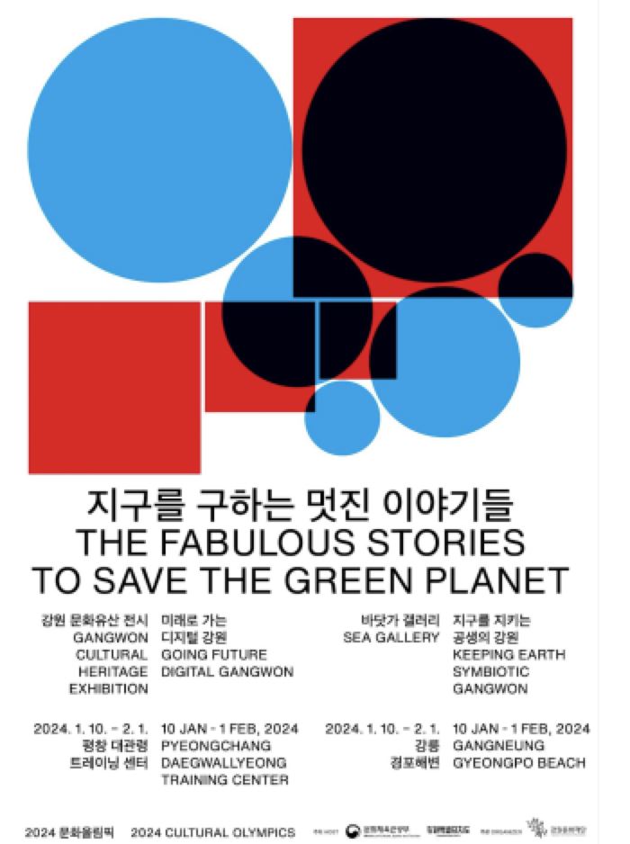 2024 강원동계청소년올림픽, 문화올림픽 전시프로그램 《지구를 구하는 멋진 이야기들》전이 오는 1월 10일부터 2월 1일까지 (평창) 대관령트레이닝센터 및 (강릉) 경포해변 일대에서 개막한다. 문화체육관광부와 강원특별자치도가 주최하고 강원문화재단이 주관하며 이승아 수석 큐레이터가 전시기획을 총괄한다.