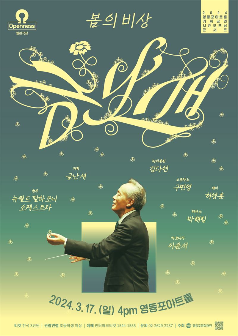 영등포문화재단(대표이사 이건왕)은 오는 3월 17일(일) 2024 영등포아트홀 기획공연 시즌 오프닝 공연 <금난새 음악회: 봄의 비상>을 개최한다.
